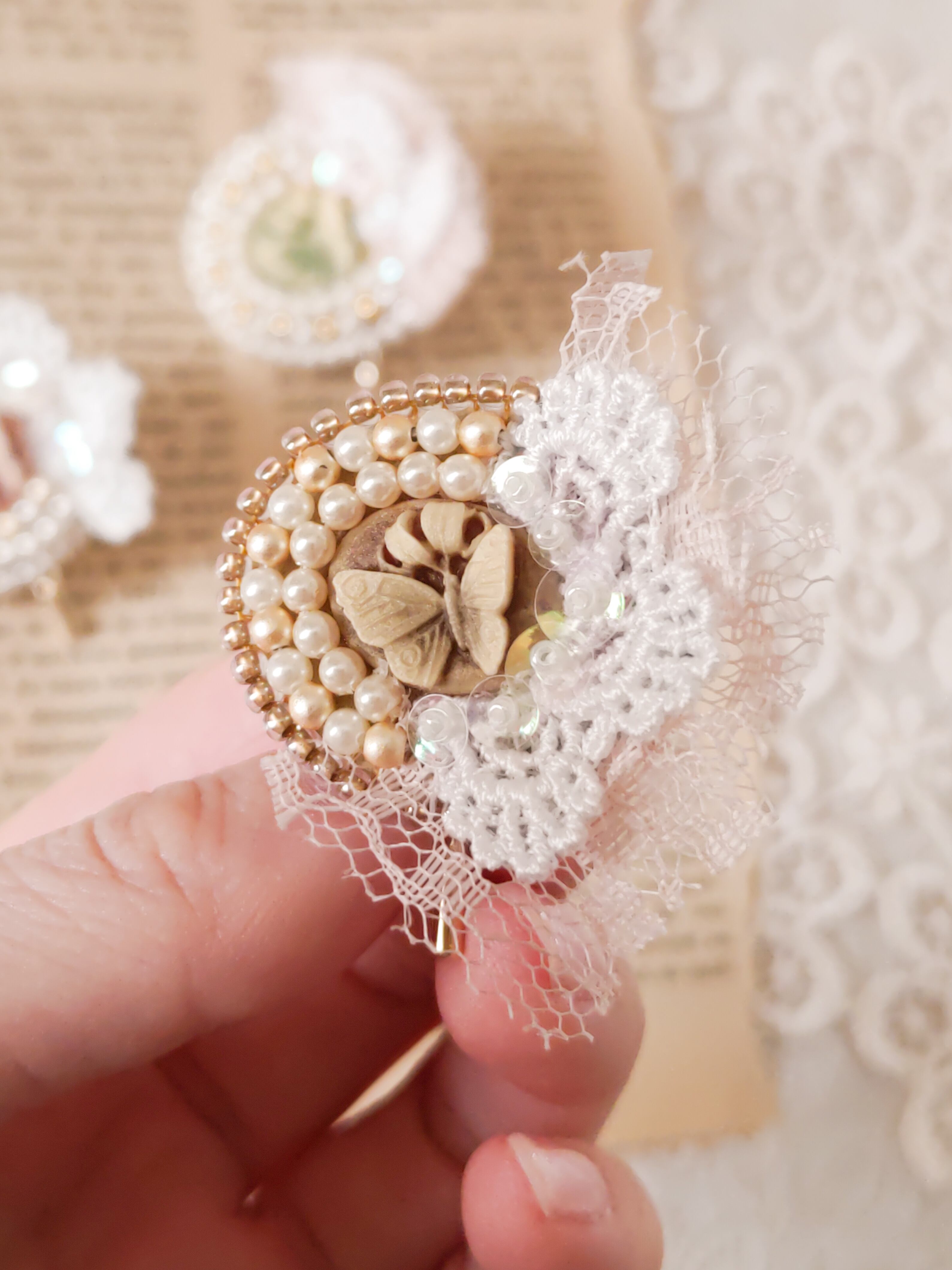 素材:カメオ、パール、スパンコール、ビーズ、金具(真鍮)