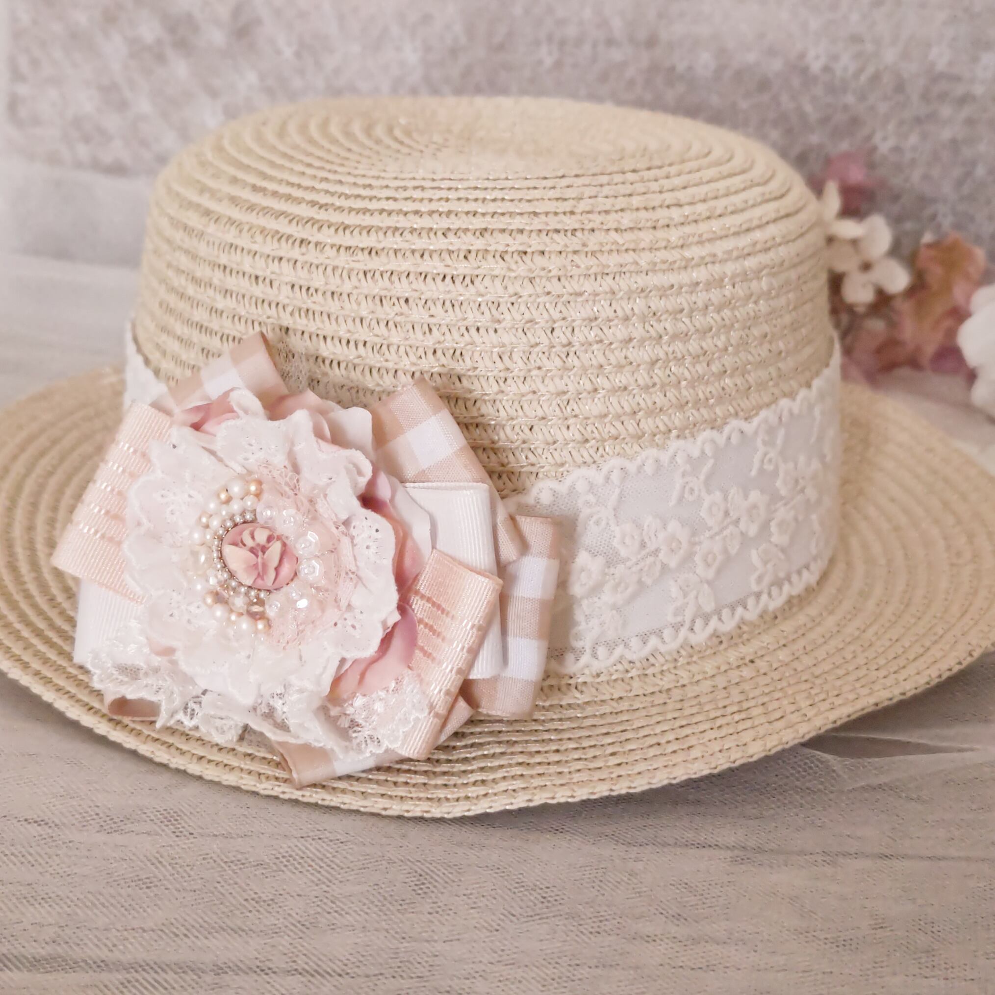 「ーお花と蝶ー3wayコサージュ」と「リボン付き麦わら帽子」の限定セットです。