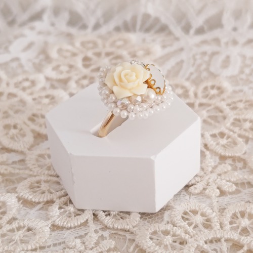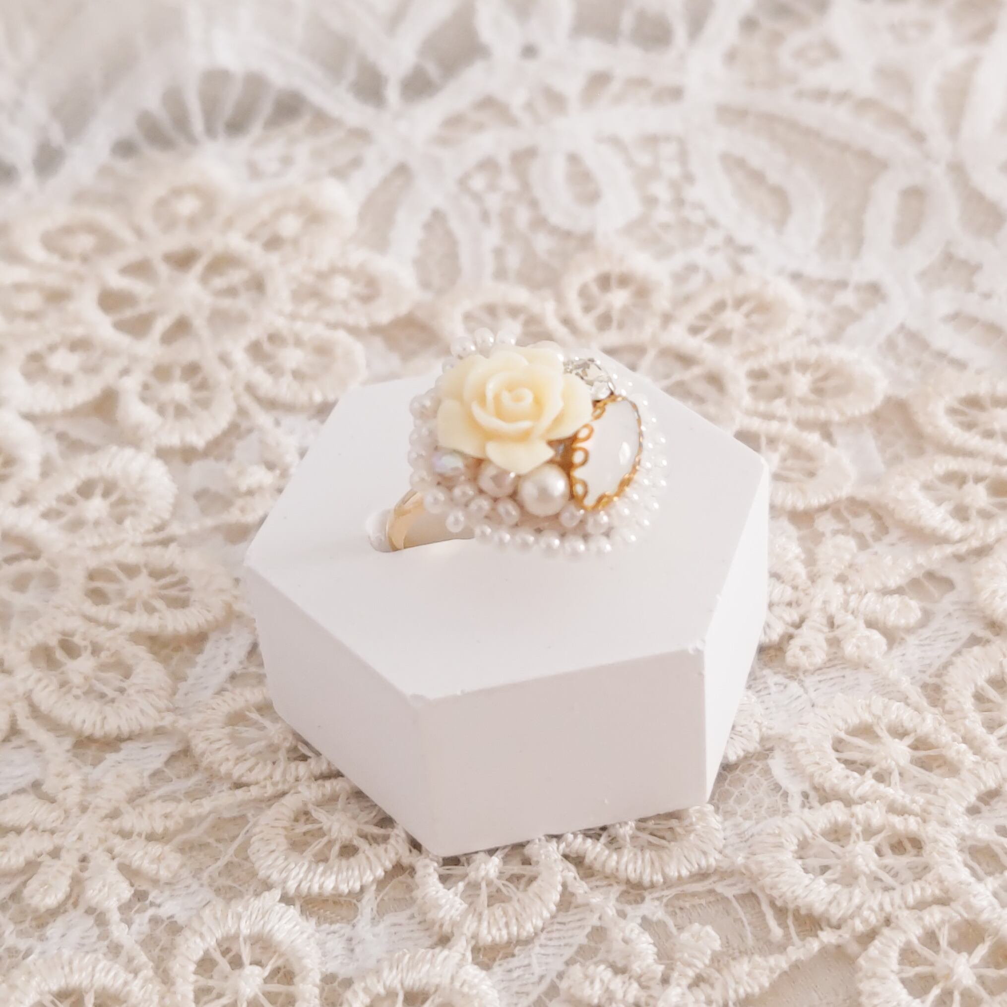 お色はクリームイエローの薔薇パーツをメインに、白、クリーム系のお色でまとめております。