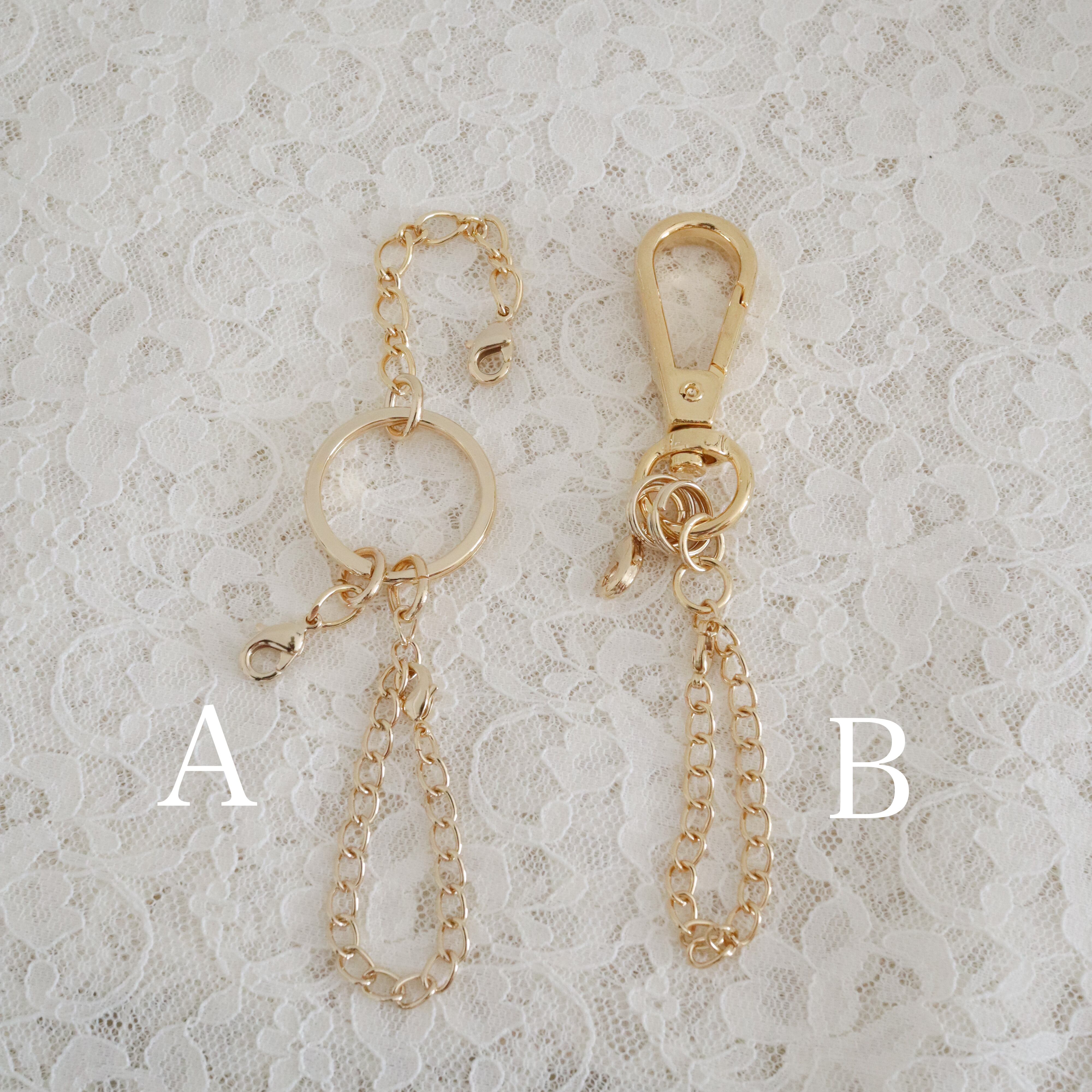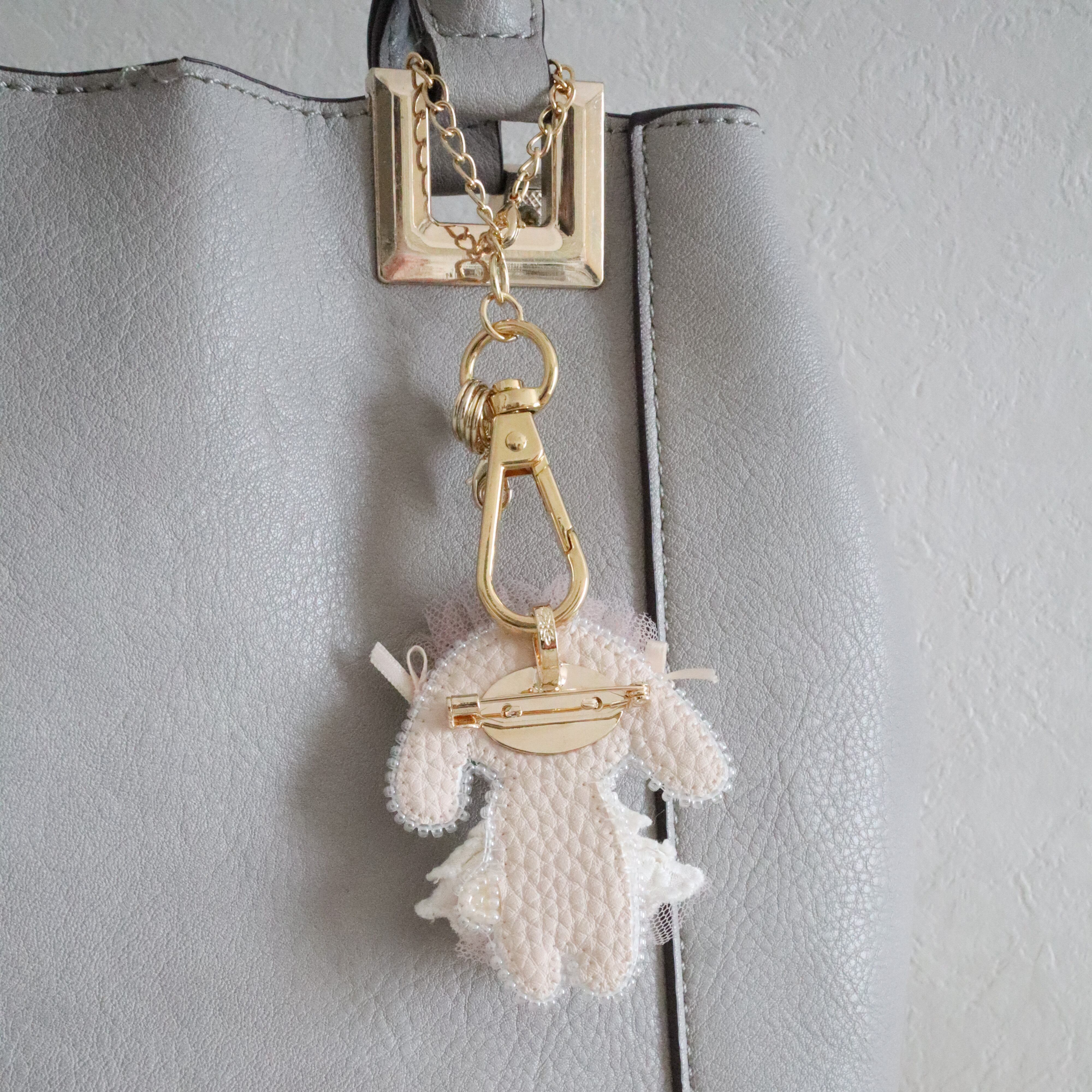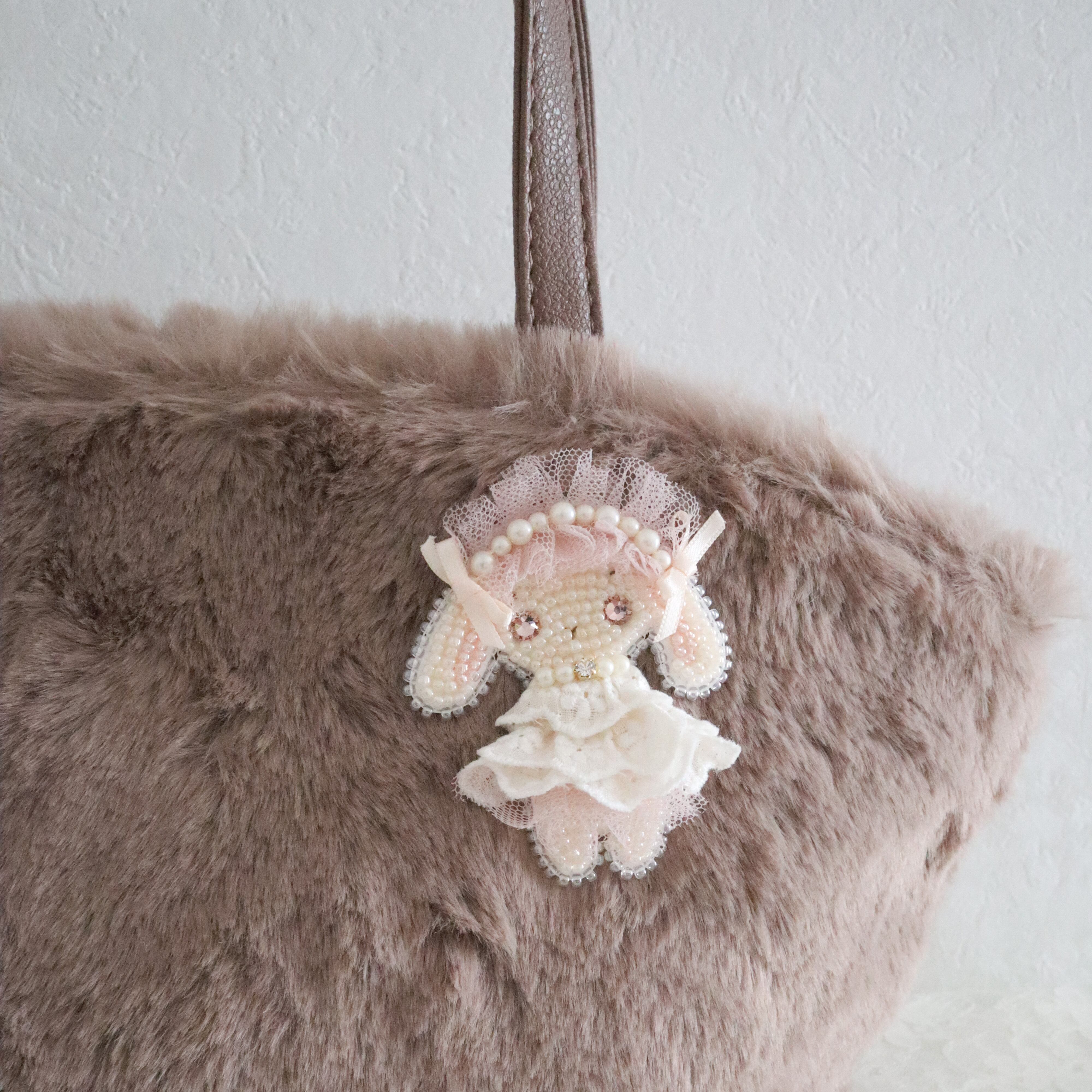 【12/21~23限定受注生産】 《ハンドメイドのお仕事サミット2022 オンラインイベント》に合わせて限定販売となります。 ──────────────────── うさぎのイラストを描き、ビーズを1つひとつ縫いつけてビーズ刺繍しました。 瞳にはピンクのスワロフスキーでキラッと。 レースのお洋服やリボン付きのヘッドドレスを付けて ロリィタファッション風のうさぎちゃんになりました♡ 少し大きめですが、バッグや帽子、もちろんお洋服にも これ一つ付けるだけで存在感のあるお洒落ができますよ♪ 可愛いものがお好きな方、うさぎさんがお好きな方 ぜひうさぎさんを連れて、一緒にお出かけしてみませんか? プレゼントにもおすすめです♪ ──────────────────── 金具はブローチとバッグチャームやネックレス金具などを通せる2way仕様となっております。 バッグチャームだけでなく、ネックレス金具を通すこともできます。 革紐やリボンなどでも大丈夫ですし、お手持ちのチェーンなどを通してもお使いいただくことが可能です。 (金具に通るサイズまで) ──────────────────── ブローチとしてお使いいただく場合は、バッグチャームは取り外し可能です。 布製の針の通るものでしたら着けることができます。 ──────────────────── 縁周りはビーズで丁寧にステッチしています。 どの角度から見ても綺麗になるようこだわって製作しております。 ──────────────────── 裏側はフェイクレザーを使用しております。 2way金具の性質上、金具が見えておりますが外れにくくなるよう糸で縫い留める工夫をしております。 ──────────────────── サイズ(うさぎモチーフ):縦6.7cmx横5.3cm 金具:真鍮ブローチ金具 金具の色:ゴールド 素材:ビーズ、パール、スワロフスキー、ビジュー、レース、チュール、リボン、金具(真鍮) ──────────────────── バッグチャームは付属でお付けしておりますが 2つのタイプがございますので、〖A〗〖B〗どちらかをオプションでお選びください。 ──────────────────── ※パールのロングネックレスは別売りとなっておりますのでオプションからお選びください。 (+1700円となります) ──────────────────── 【発送について】 お届けにはご注文から7日ほどいただきます。(ご注文順に製作→発送いたします) 年末年始のため、発送にご不安がある方は 「レターパックプラス」や「宅急便コンパクト」をお選びいただくか お待ちいただけるようでしたら、年明け5日以降のご到着をお勧めいたします。 (今回のイベントに限り、発送方法変更でも実質送料無料となります) ──────────────────── 【ラッピングについて】 今回のイベント限定で、ラッピングをした状態でお届けします。 レース模様のOPP袋に入れ、レースの巾着袋にお入れします。 巾着袋はバッグの中に飴を入れたり、リップを入れたりするのにぜひご活用くださいね♡ ご不明な点、ご質問はご注文の前にお願い致します。